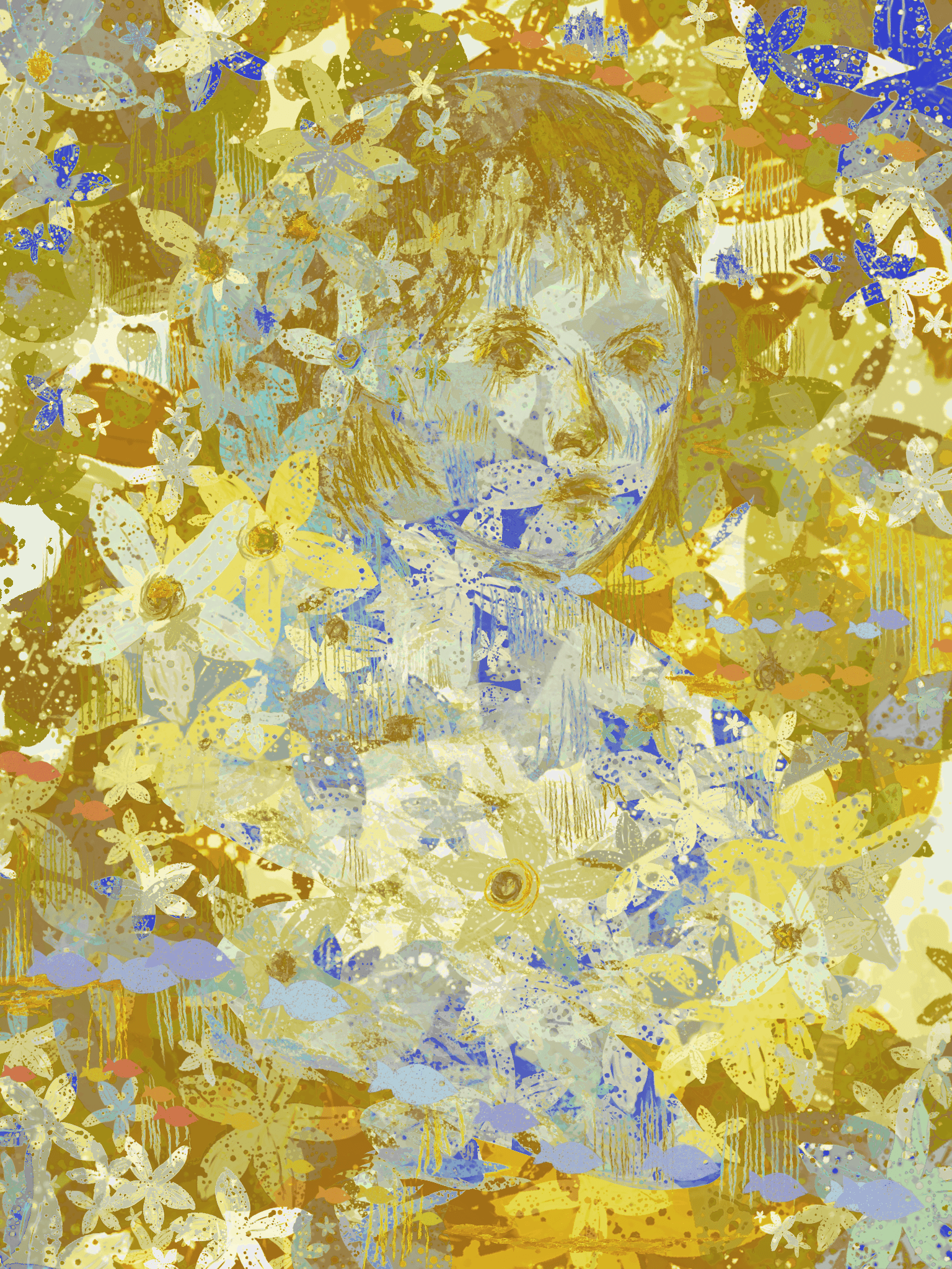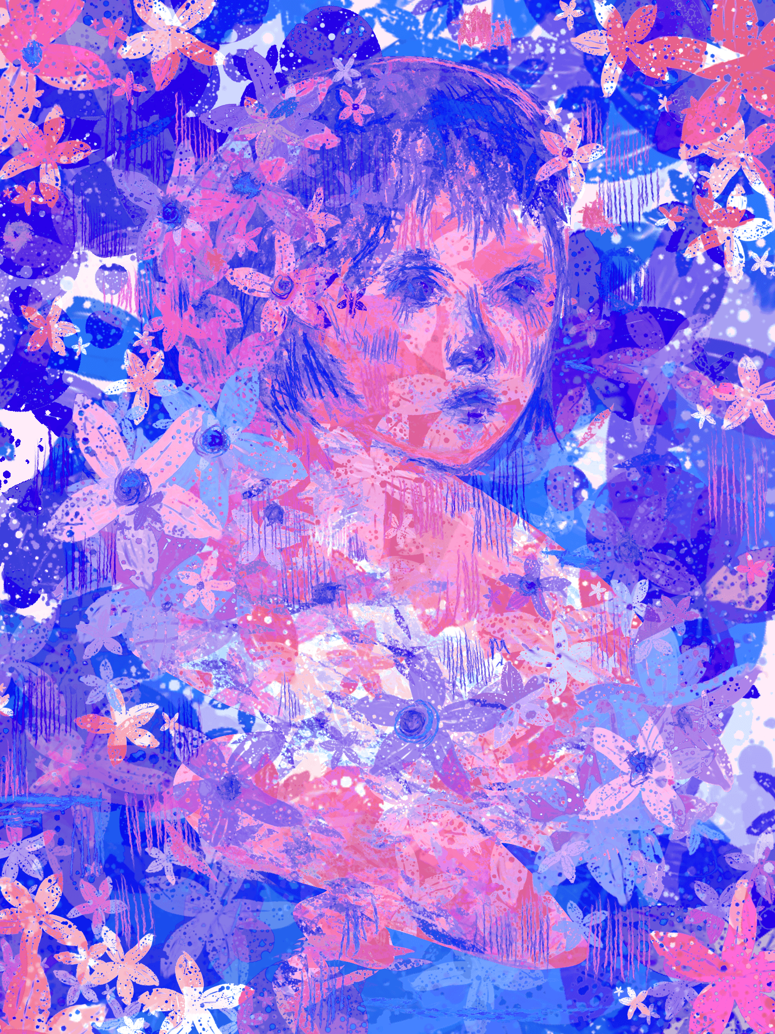 A figure looks out from inside a world that is too full, too bright, too insistent to be held at arm's length. The flowers don't frame her. They press in, overlap, dissolve the boundaries between figure and ground until you can't quite tell where she ends and the world begins. The orange cuts through the blue like something urgent trying to be heard. The drips pull everything downward, just slightly, like the weight of sensory experience made visible. There's something I keep coming back to in this piece: the expression. She isn't overwhelmed, exactly. She's watching. Taking it in. There's a kind of quiet resilience in that gaze that I didn't plan for but couldn't ignore once it was there. That's the thing about work that starts without a destination. It finds its way to something truer than anything you could have mapped out in advance. This piece became, without meaning to, a portrait of what it feels like to be small in a world that is extraordinarily loud. And to stay present in it anyway.