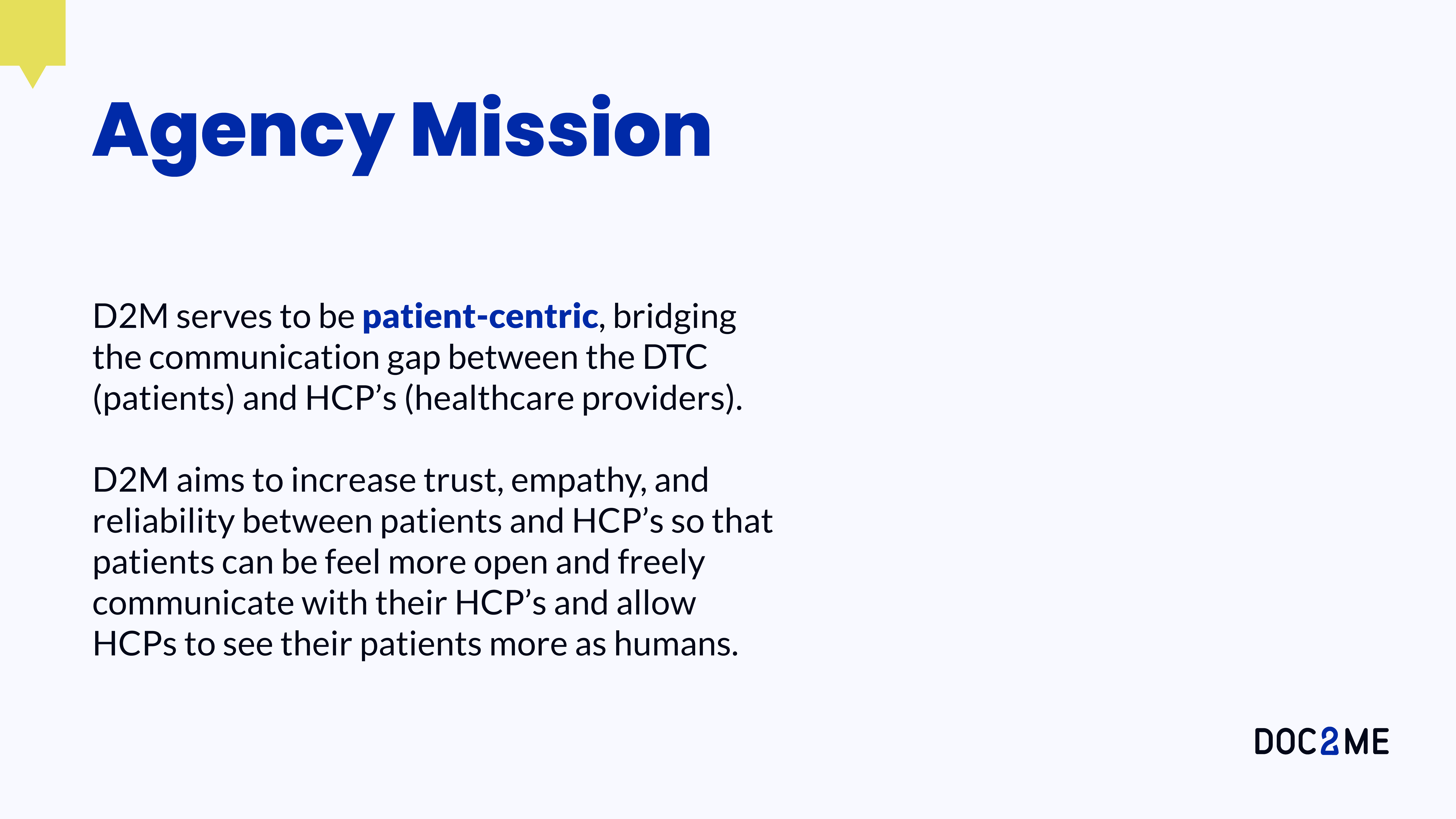 Healthcare communication has a design problem. It defaults to clinical distance, to sterile blues and cautious language, to the visual vocabulary of institutions that were built to process people rather than see them. Doc2Me wanted something different: a brand that could walk up to a New Yorker on the street and feel immediately human. This project was developed as part of an internship advertising campaign assignment, with the brief centered on building a brand identity for a healthcare communication platform from the ground up. As the visual and brand designer on the team, my work was to build the identity system that would make that human connection feel real and consistent across every touchpoint. The result is bold and direct without being cold, warm without being soft. Royal blue and yellow carry confidence and optimism in equal measure. The logo mark, a speech bubble shaped like a location pin, does the conceptual work quietly: your voice has a place here, and that place is close to you. The campaign extensions take that system into the real world. Wheat-pasted across a city wall, the messaging lands the way good public health communication should: plainly, respectfully, without talking down. "We know you. We see you. We hear you." That's not just copy. It's a design principle, and every visual decision in this system was made in service of it. Bridging the gap between patients and healthcare providers is a systems problem. But it is also, at its core, a trust problem. This brand was built to earn that trust on sight.